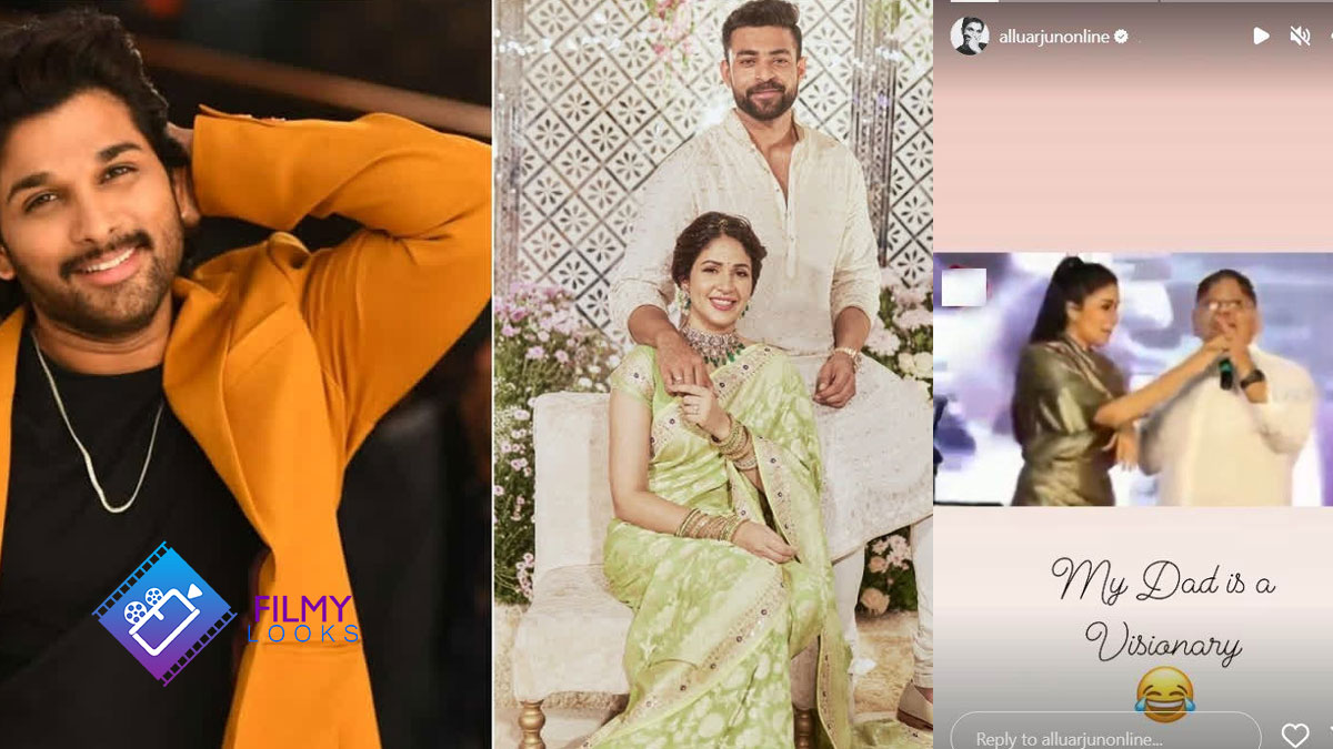 వ‌రుణ్ తేజ్, లావణ్య నిశ్చితార్థం త‌ర్వాత వారిరివురికి సంబంధించి అనేక వీడియోలు నెట్టింట తెగ హ‌ల్‌చ‌ల్ చేస్తున్నాయి. ఈ క్ర‌మంలో ఐకాన్ స్టార్ బన్నీ ఓ పాత వీడియో షేర్ చేశారు. తన తండ్రి విజనరీ అంటూ క్యాప్షన్ పెట్టి వీడియో షేర్ చేశాడు. ఇంతకీ ఆ వీడియోలో ఏముందంటే.. ఒక సినిమా ప్రమోషన్ లో భాగంగా, అల్లు అరవింద్.. లావణ్య గురించి ఆస‌క్తిక‌ర‌ కామెంట్స్ చేశారు. ఉత్తరాది నుంచి వచ్చిన లావణ్య, తెలుగు చక్కగా నేర్చుకుని మాట్లాడుతుందని, ఇక్కడే ఓ అబ్బాయిని చూసుకుని పెళ్లి చేసుకుని సెటిల్ అయితే బాగుంటుందని చెప్పారు. అప్పుడు ఆయన మాటలను అక్షరాలా నిజం చేసి చూపించింది లావణ్య.