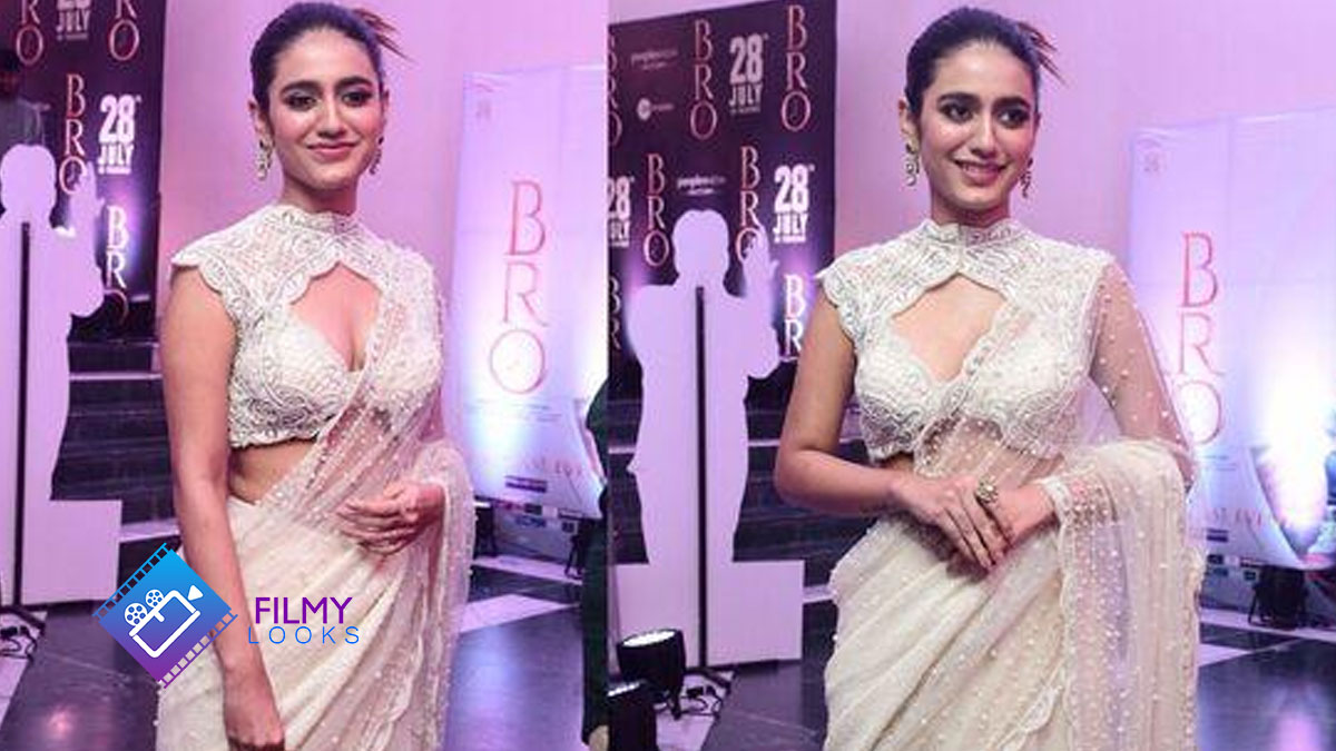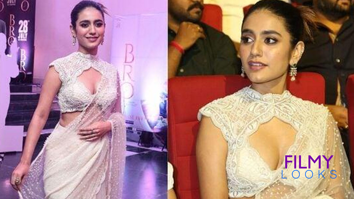 ప్రియా ప్ర‌కాశ్ వారియ‌ర్ తెలుగులో కూడా ప‌లు సినిమాలు చేసిన ఈ అమ్మ‌డికి అదృష్టం క‌లిసి రాలేదు. రీసెంట్‌గా ప‌వ‌న్ క‌ళ్యాణ్‌, సాయి ధ‌ర‌మ్ తేజ్ ప్ర‌ధాన పాత్ర‌ల‌లో రూపొందిన బ్రో అనే సినిమాలో న‌టించింది. పీపుల్‌ మీడియా ఫ్యాక్టరీ నిర్మిస్తోన్న ఈ చిత్రం జులై 28న థియేటర్లలో గ్రాండ్ గా విడుదల కానుండ‌గా, ఈ సినిమాపై భారీ అంచ‌నాలే పెట్టుకుంది. అయితే గ‌త రాత్రి జ‌రిగిన ప్రీ రిలీజ్ ఈవెంట్‌కి హాజ‌రైన ప్రియా ప్ర‌కాశ్ వారియ‌ర్.. వైట్ శారీలో నిండైన చందమామలా వెలుగులు విర‌జిమ్మింది. ఇక ప్రియా జాకెట్‌ అయితే నెక్స్ట్ లెవల్ హాట్ నెస్ అనే చెప్పాలి.  కటింగ్ బ్లౌజ్ లో ఎద పరువాలు చూపిస్తూ కుర్రాళ్ల‌కి కంటిపై కునుకు లేకుండా చేసింది.