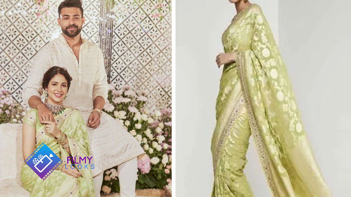చీరలో ఆమె మరింత అందంగా కనిపించే సరికి ప్రతి ఒక్కరి దృష్టి ఆమెపైనే పడింది. వరుణ్ తేజ్ కుర్తా పైజామా ధరిస్తే, లావణ్య త్రిపాఠి ఆకుపచ్చ రంగు బనారస్ చీర ధరించి అందరి దృష్టి ఆకర్షించింది. అయితే ఎంగేజ్మెంట్లో లావణ్య త్రిపాఠి ధరించిన చీర ఖరీదు ఎంతనే విషయంపై ఆసక్తికర చర్చ నడుస్తుంది. ఈ క్రమంలోనే కొందరు ఆమె చీర ధర అక్షరాల రూ. 75వేల రూపాయలు అని అంటున్నారు. దీనిని అనితా డోంగ్రే అనే ఫ్యాషన్ డిజైనర్ డిజైన్ చేశారట. మెగా ఇంటికి కోడలు కాబోతున్న లావణ్య త్రిపాఠి లక్ష రూపాయల చీర ధరించినా తక్కువే అవుతోందని కొందరు మెగా అభిమానులు కామెంట్ చేస్తున్నారు.