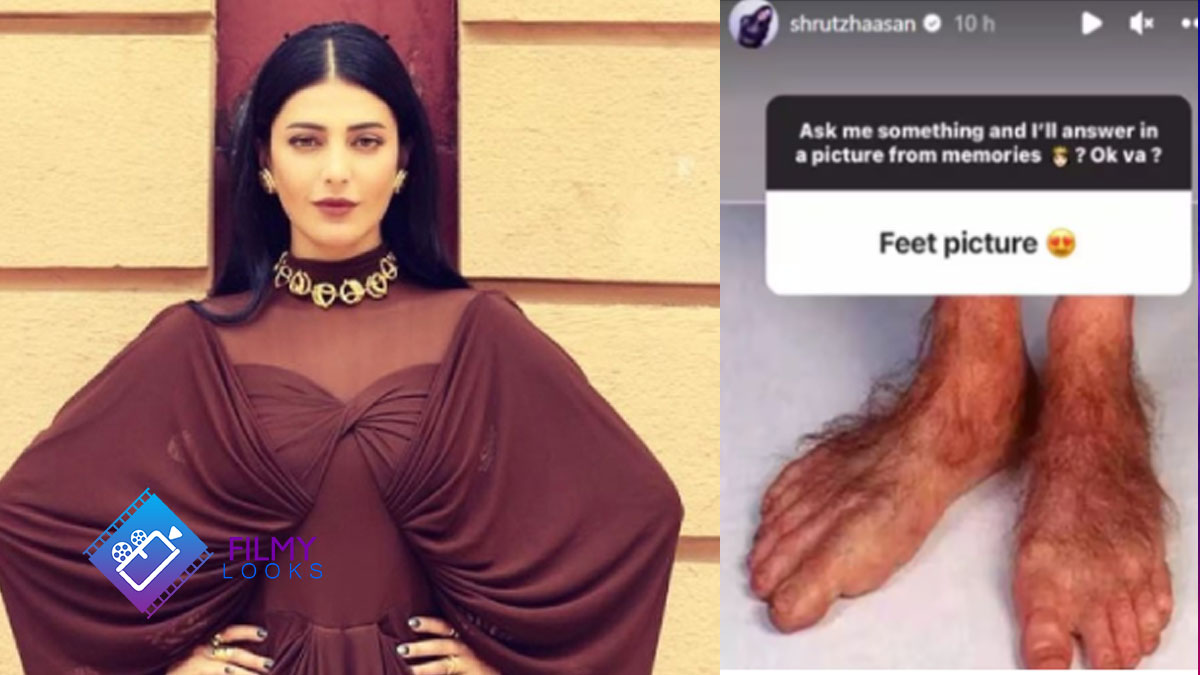 ఇక అడ‌పాద‌డ‌పా నెటిజ‌న్స్‌తో ముచ్చ‌టిస్తూ ఉంటుంది. వారు అడిగే ప్ర‌శ్న‌ల‌కి ఆస‌క్తిక‌ర స‌మాధానాలు ఇస్తుంటుంది. తాజాగా శృతి హాస‌న్ నెటిజ‌న్స్‌తో క్యూ అండ్ ఏ జ‌ర‌ప‌గా, ఆమెని ఓ నెటిజ‌న్ చిన్నప్పటి ఫోటో పెట్టమని అడిగారు. మ‌రొక‌రు రెడ్‌ డ్రెస్‌లో ఫోటోని పంచుకోమని, ఇంకొక‌రు బాయ్‌ ఫ్రెండ్‌తో ఉన్న ఫోటోని షేర్‌ చేయమని, ఇలా రకరకాల ప్రశ్నలు వేశారు.. అయితే ఓ నెటిజ‌న్ కాస్త విచిత్రంగా తన పాదాల ఫోటో చూపించమన్నాడు. దీనికి శృతి హాస‌న్ ఒక వింత జంతువో లేక, ఏలియన్‌ కాళ్లో తెలియదు కానీ వింతాగా ఉన్న పిక్ షేర్ చేసింది. ఆ ఫొటో చూసి నెటిజన్‌కి దిమ్మతిరిగిపోవడం విశేషం. ప్ర‌స్తుతం ఈ పిక్ సోషల్‌ మీడియాలో వైరల్‌ అవుతుంది.